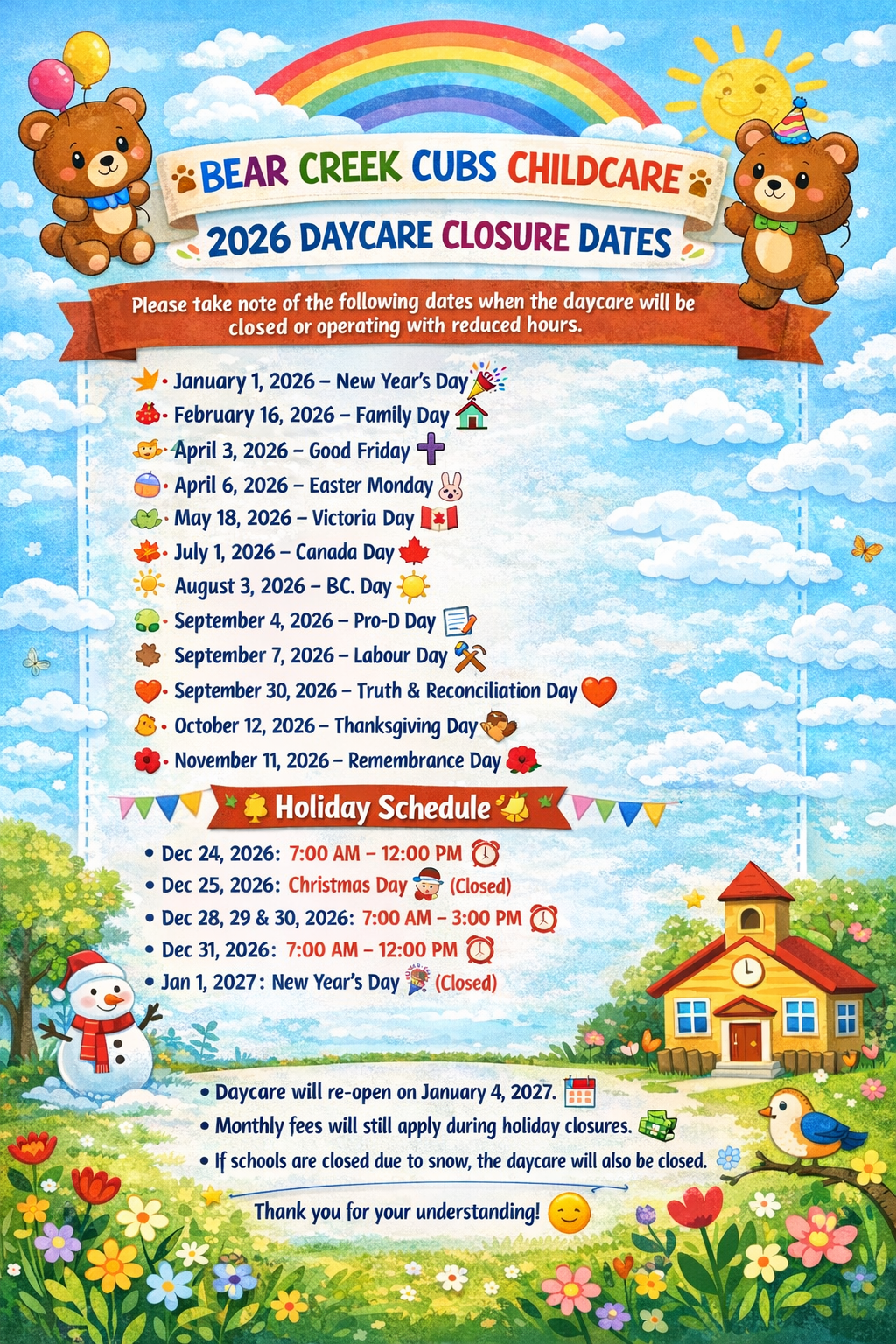 Please understand that we have this protocol in place for the safety and wellbeing of everyone attending Bear Creek Cubs Childcare.